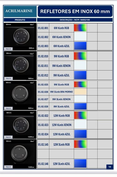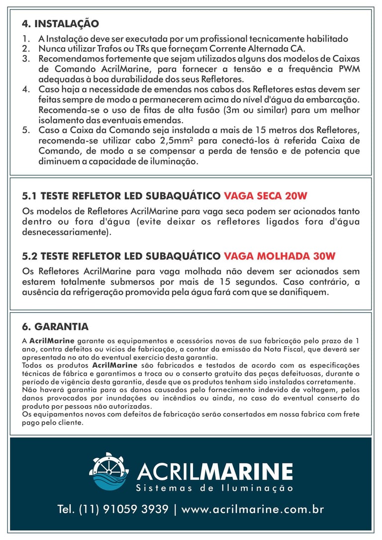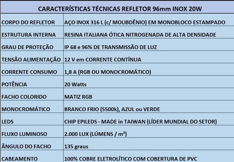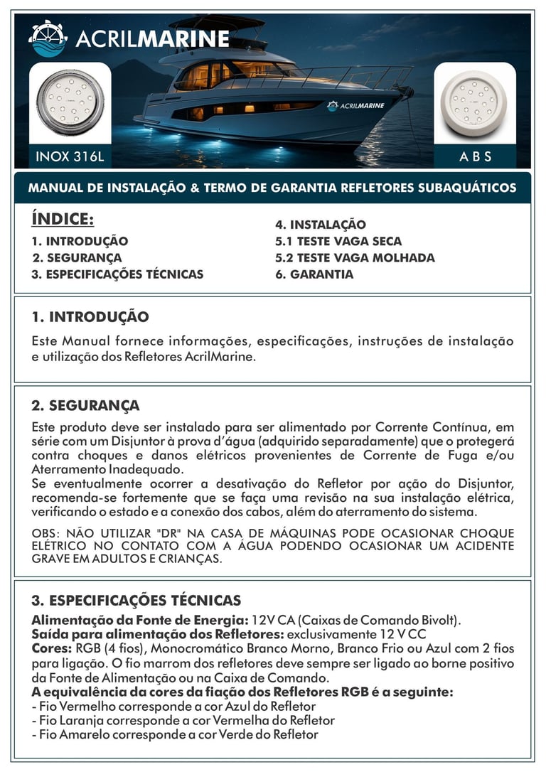 LED SUBAQUATICA SUBMERGÍVEL EM INOX 0,68CM PARA EMBARCAÇÃO