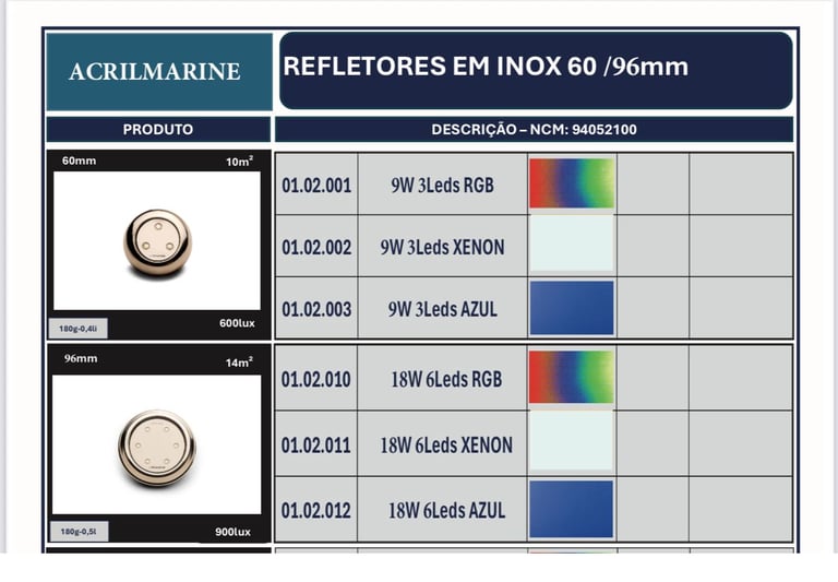 LED PARA CABINE E CAMAROTE EM INOX 0,70CM PARA EMBARCAÇÃO E MOTOHOME